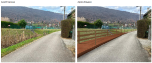 • Le long de l’impasse des Choseaux, en contrebas de la Voie Verte actuelle, avec la création d’un ponton en bois spécifique dans le cadre des travaux,